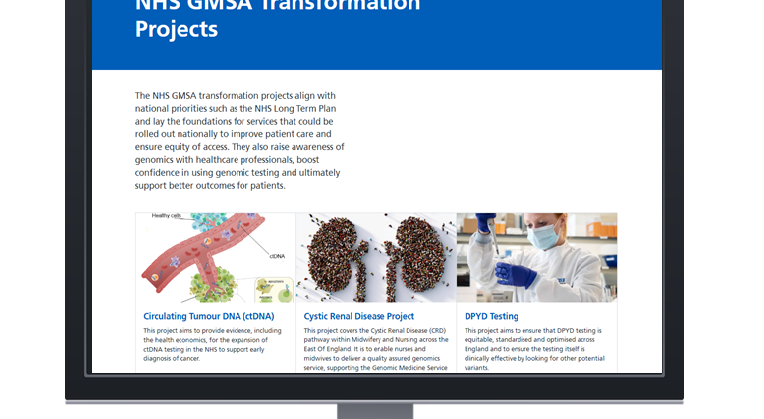 Find out more about our GMSA Transformation Projects across a range of cancers, rare conditions and pharmacogenomics